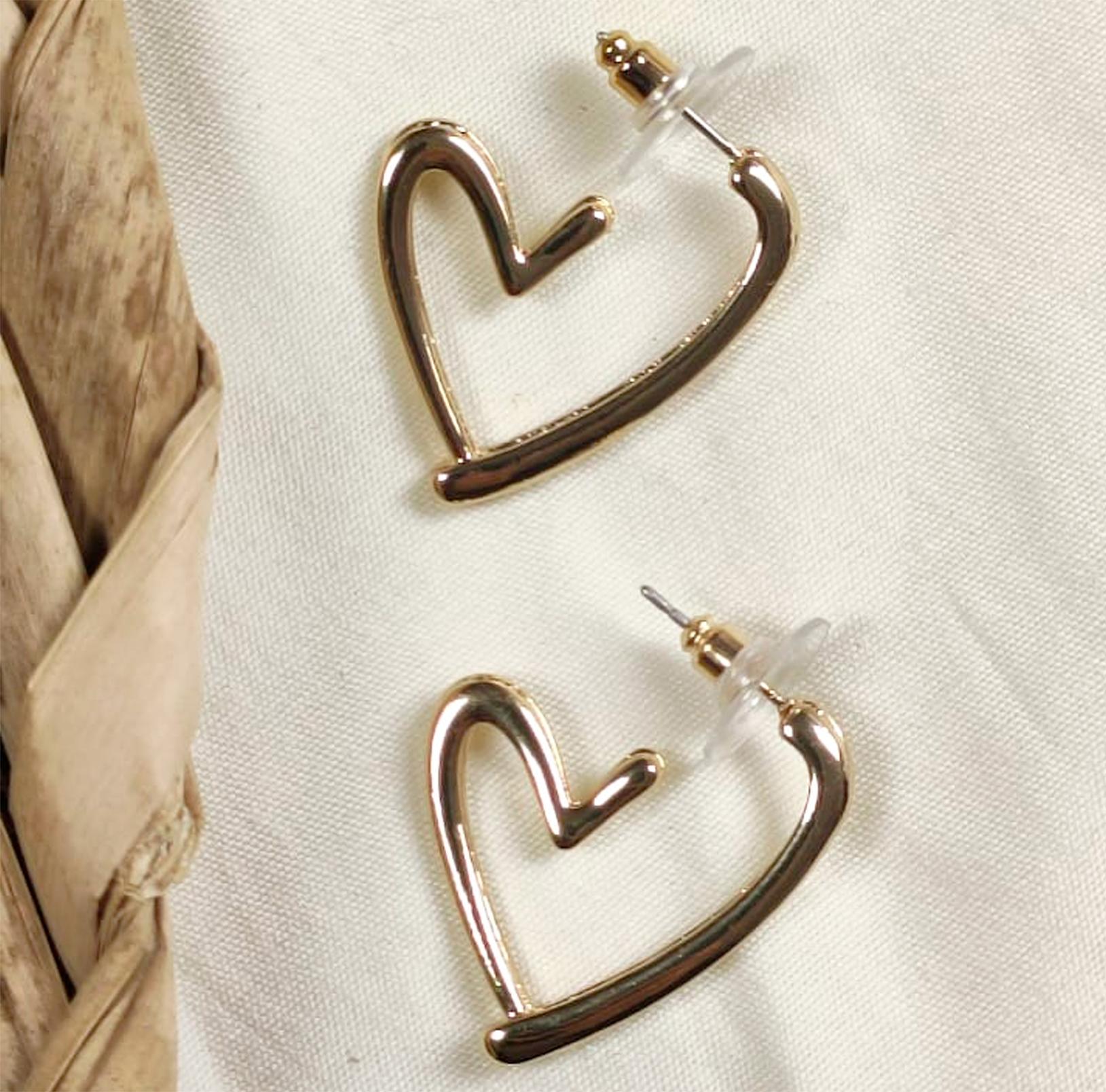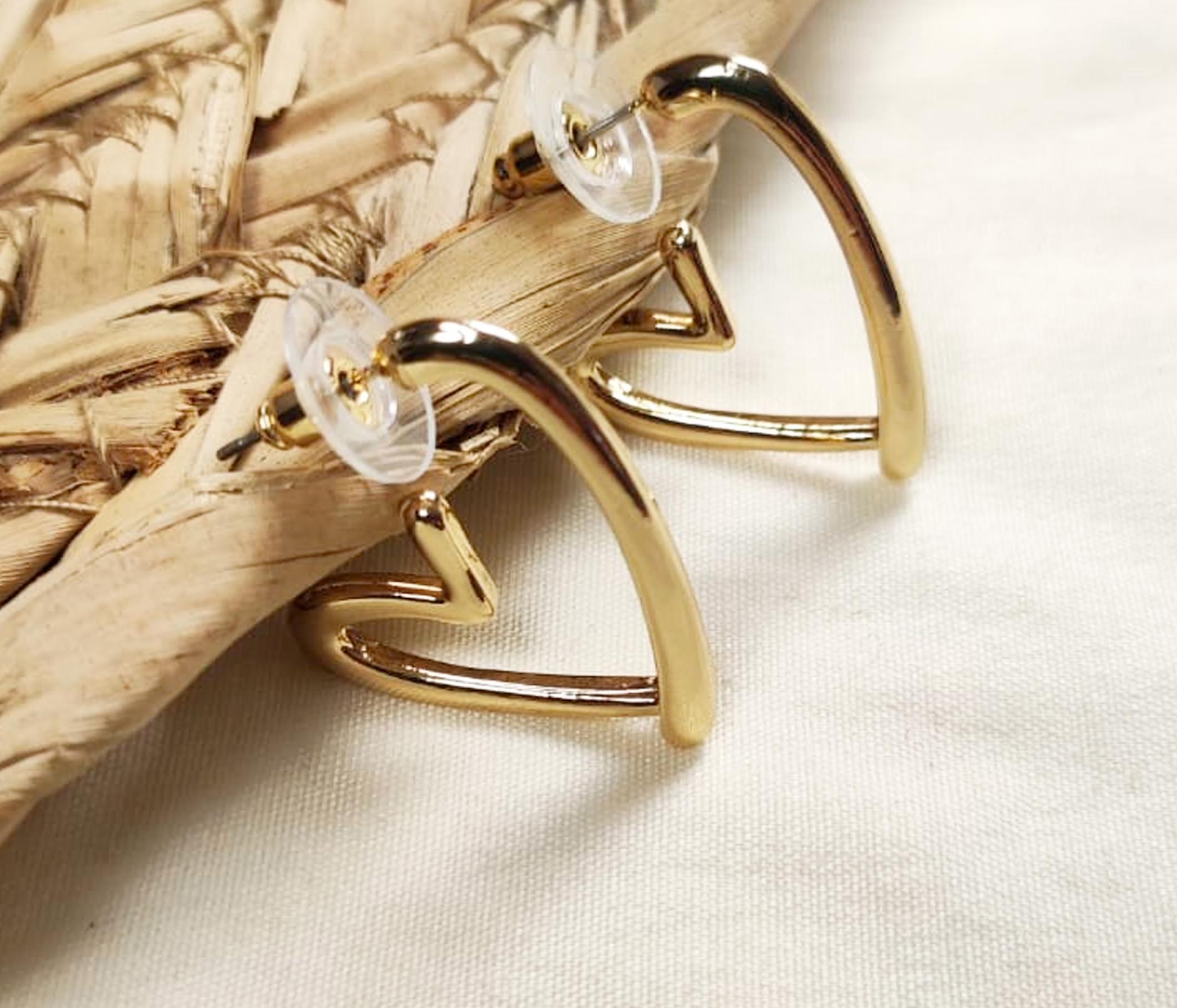 Aretes de Fantasía fina. Corazones tipo argolla delgados, para marcar finura en el rostro, crear un enmarque elegante.