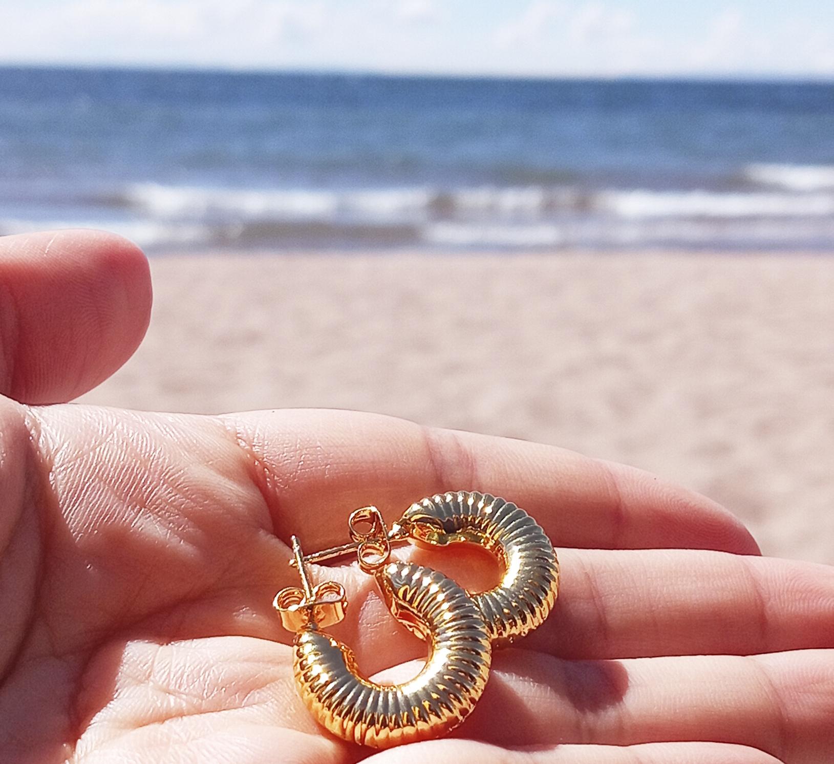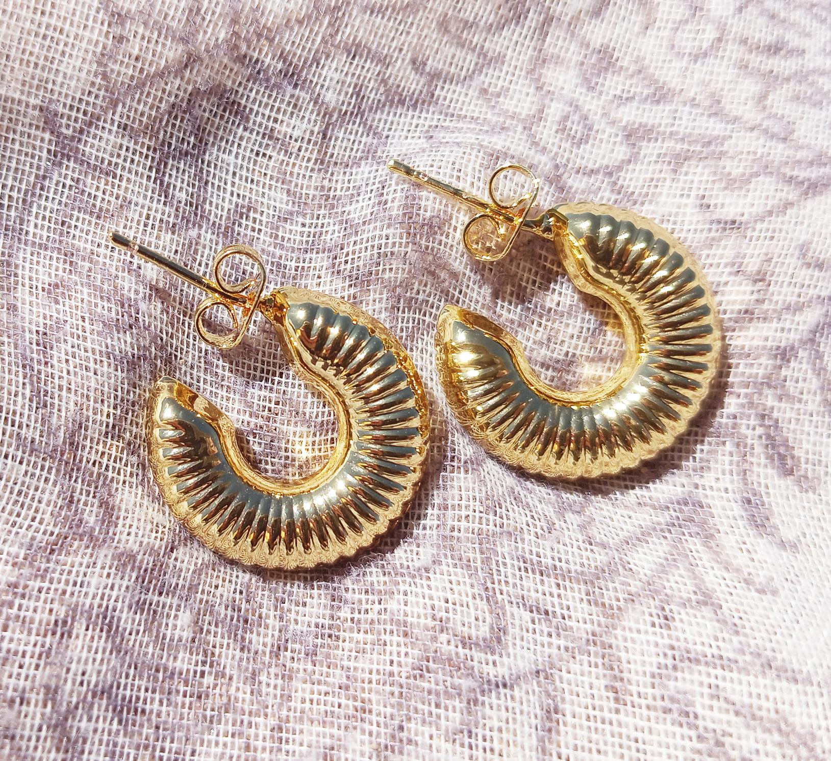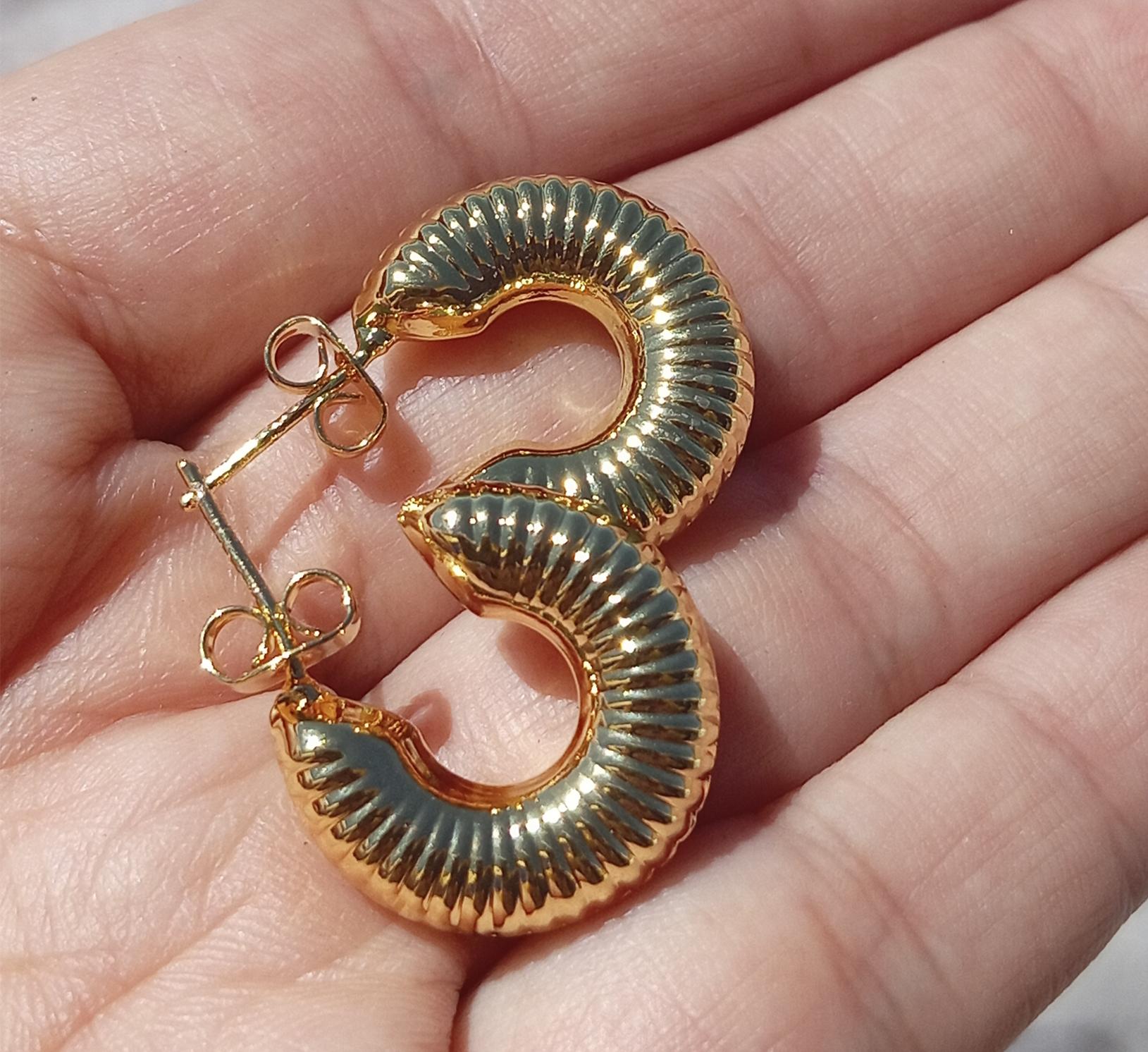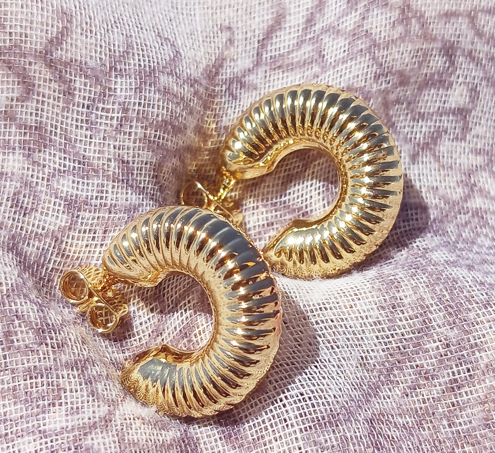 Argolla caracol dorada, tamaño pequeño. Joyería fina. cuidado en los detalles para generar elegancia, vigor y brillo.