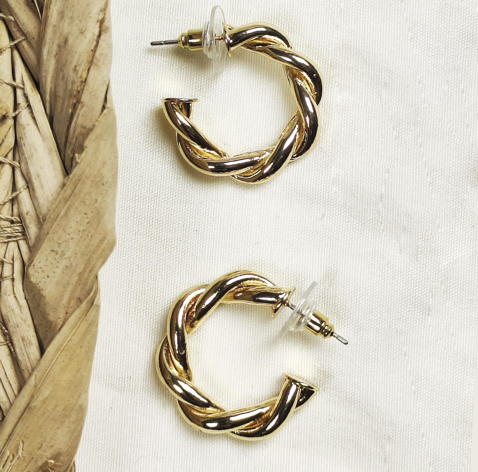 Argollas trenzadas pequeñas, un trenzado sutil muy en tendencia, delicado y muy armonioso.