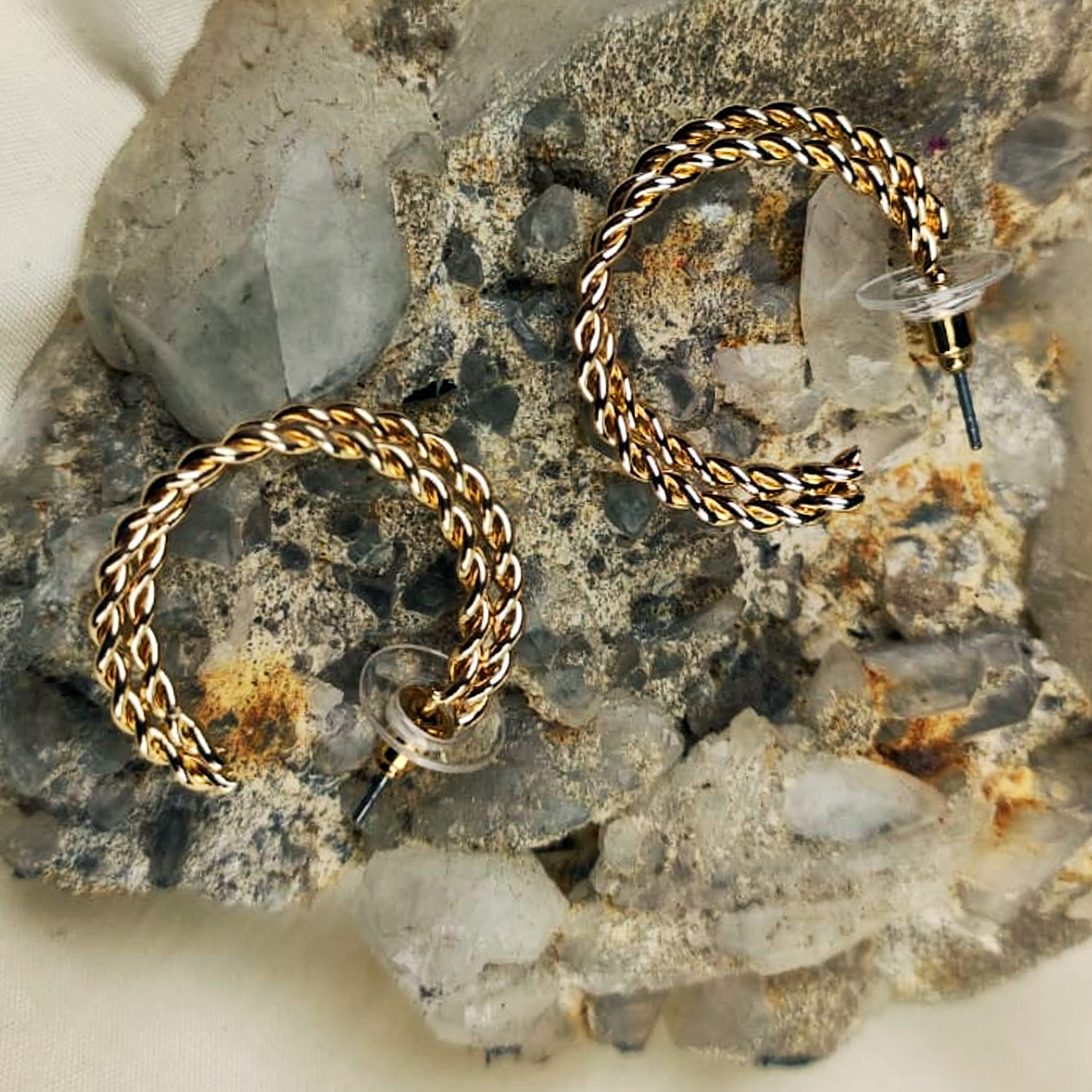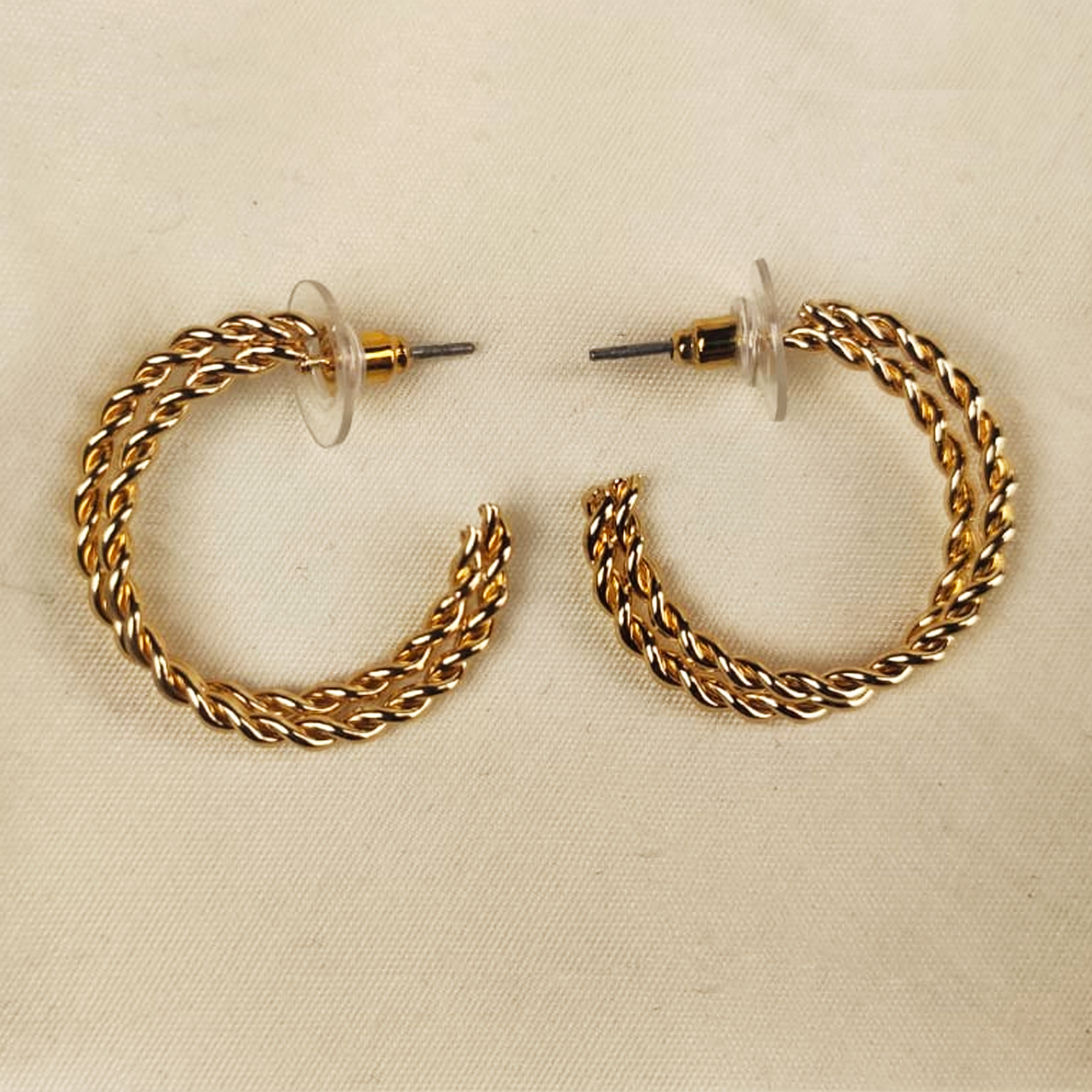 Argollas delgadas trenzadas, en fantasía fina. Perfectos para afinar rostros y lucirlos con cabello suelto o amarrado. Tamaño grande standart.