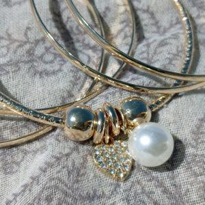 Juego de Pulseras fantasia fina, lleno de perla amor.